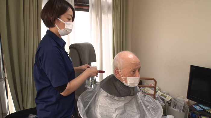 続いて取材カメラが追うのは、ご自宅や施設に訪問して髪をカットする「訪問理美容師」の玉本雅子さん。全国に80店舗を展開する「訪問理美容 髪人」の東京・世田谷のお店に勤務しています。