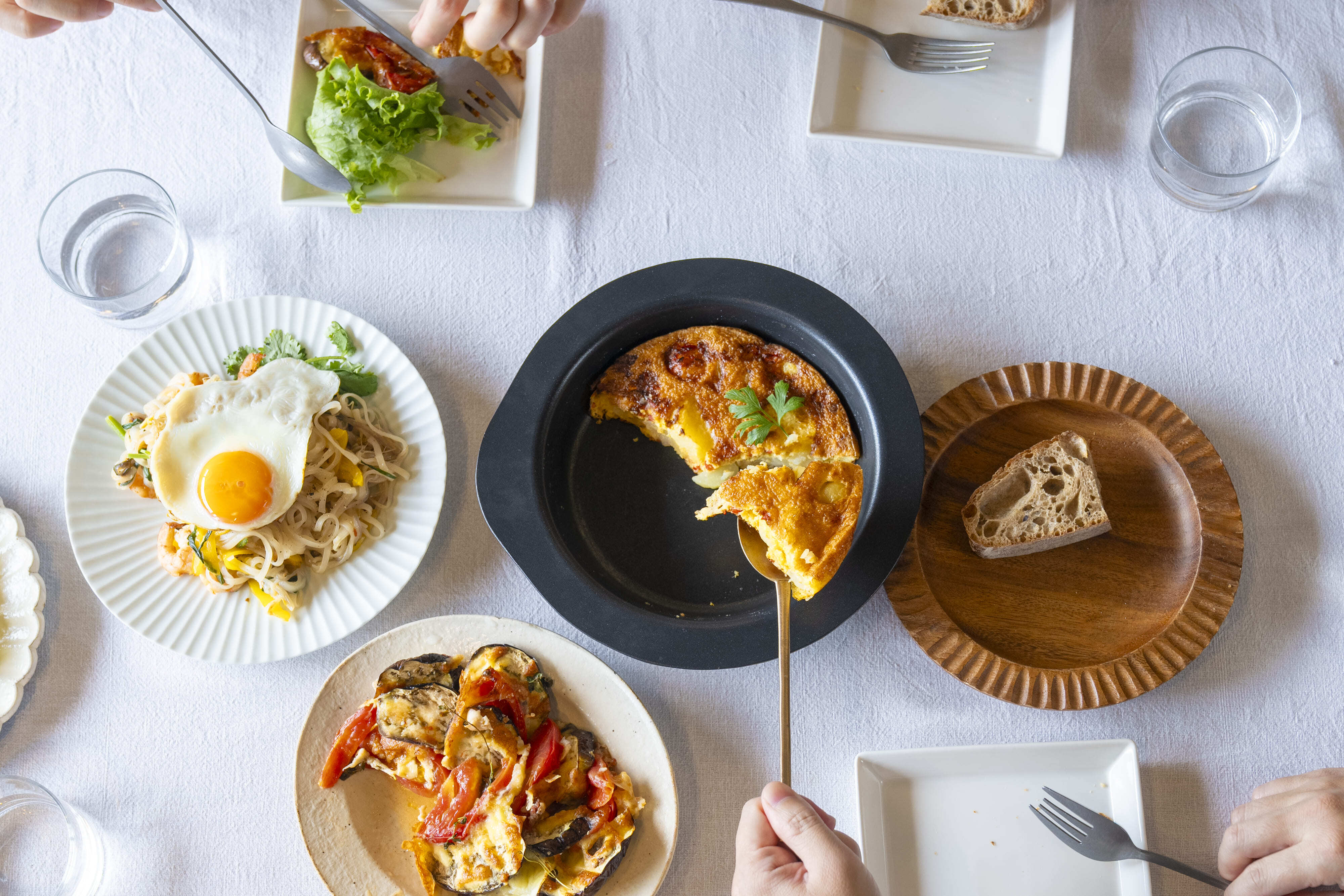 DISH GRILL(ディッシュグリル)は、「フライパンとして調理し、そのままお皿として食卓に出せる」設計の、新しい発想の調理器具です。