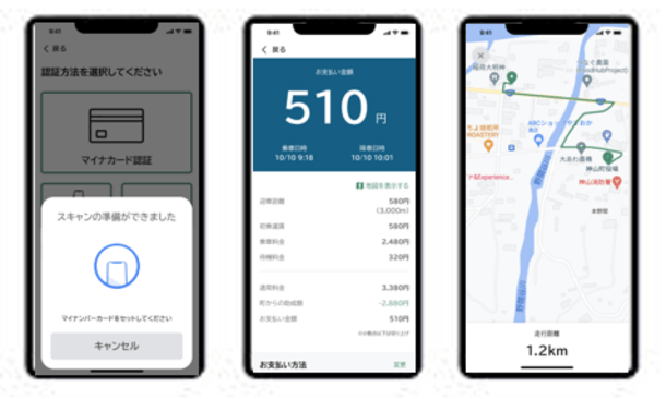 今回の導入では、GPSでの距離計算、マイナンバーカード認証によるユーザー管理や本人確認機能を採用しています。また自治体ごとのルールや利用方法に対応するため、機能の選択や追加がカスタマイズ可能です。
