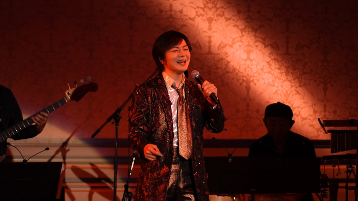 「皆さん楽しんでますか。僕が一番楽しんでいます」とはにかみながら一転『黄昏色の恋人』『プラハの橋』『Can`t Help Falling In Love』『愛の嵐』最、そして最新曲『小夜啼鳥(サヨナキドリ)の片思い』をぐっと大人な色香を漂わせ歌唱。さらに会場の熱量を上げた。