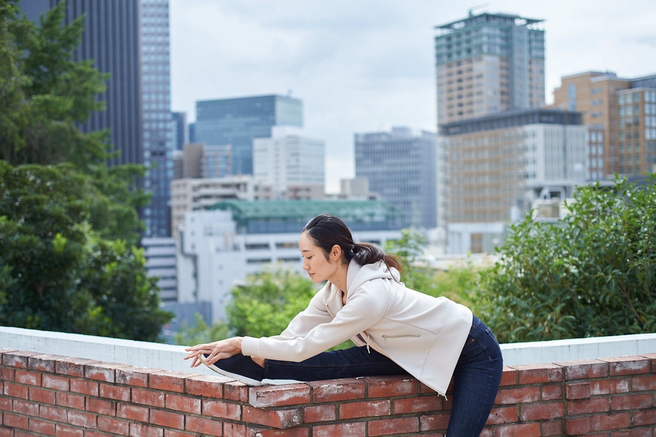 縦横斜めに伸びて軽く、はいた瞬間から身体になじむ生地はヨガもストレスなくおこなえるくらい、やわらかくて快適なはき心地。