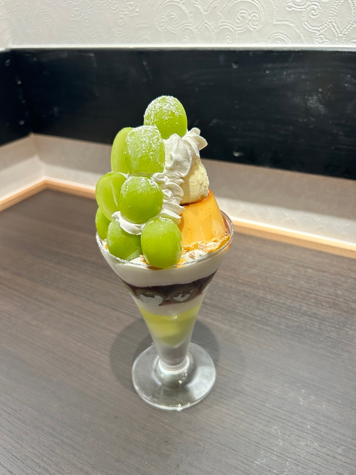 果汁滴るジューシーなシャインマスカットの食感と、上品かつさわやかな芳香な美味しさが存分に楽しめる、季節を感じさせる当店こだわりのプリンパフェをぜひお楽しみください。