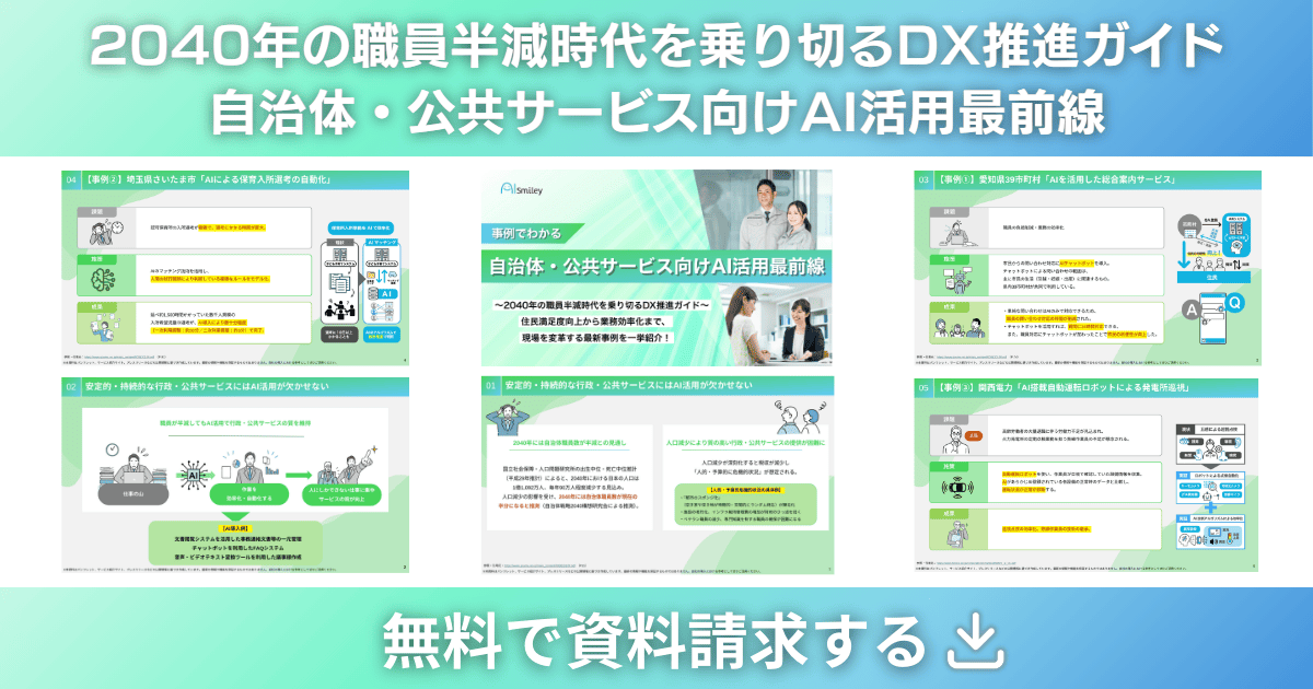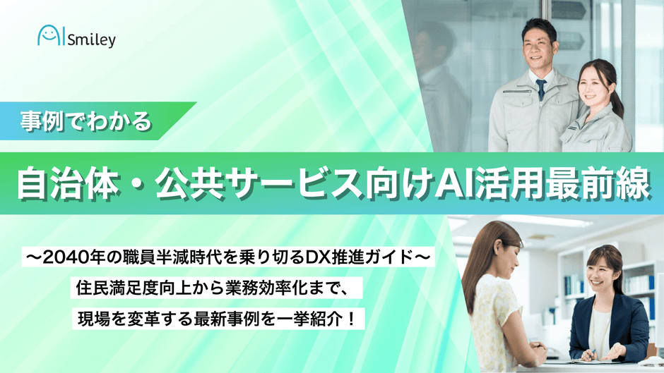 国内最大級のAIポータルメディア「AIsmiley」を運営する株式会社アイスマイリー(東京都渋谷区、代表取締役:板羽 晃司)は、自治体や公共サービスの現場におけるAI活用事例をまとめた資料「自治体・公共サービス向けAI活用最前線~2040年の職員半減時代を乗り切るDX推進ガイド~」を2026年1月29日(木)に公開しました。