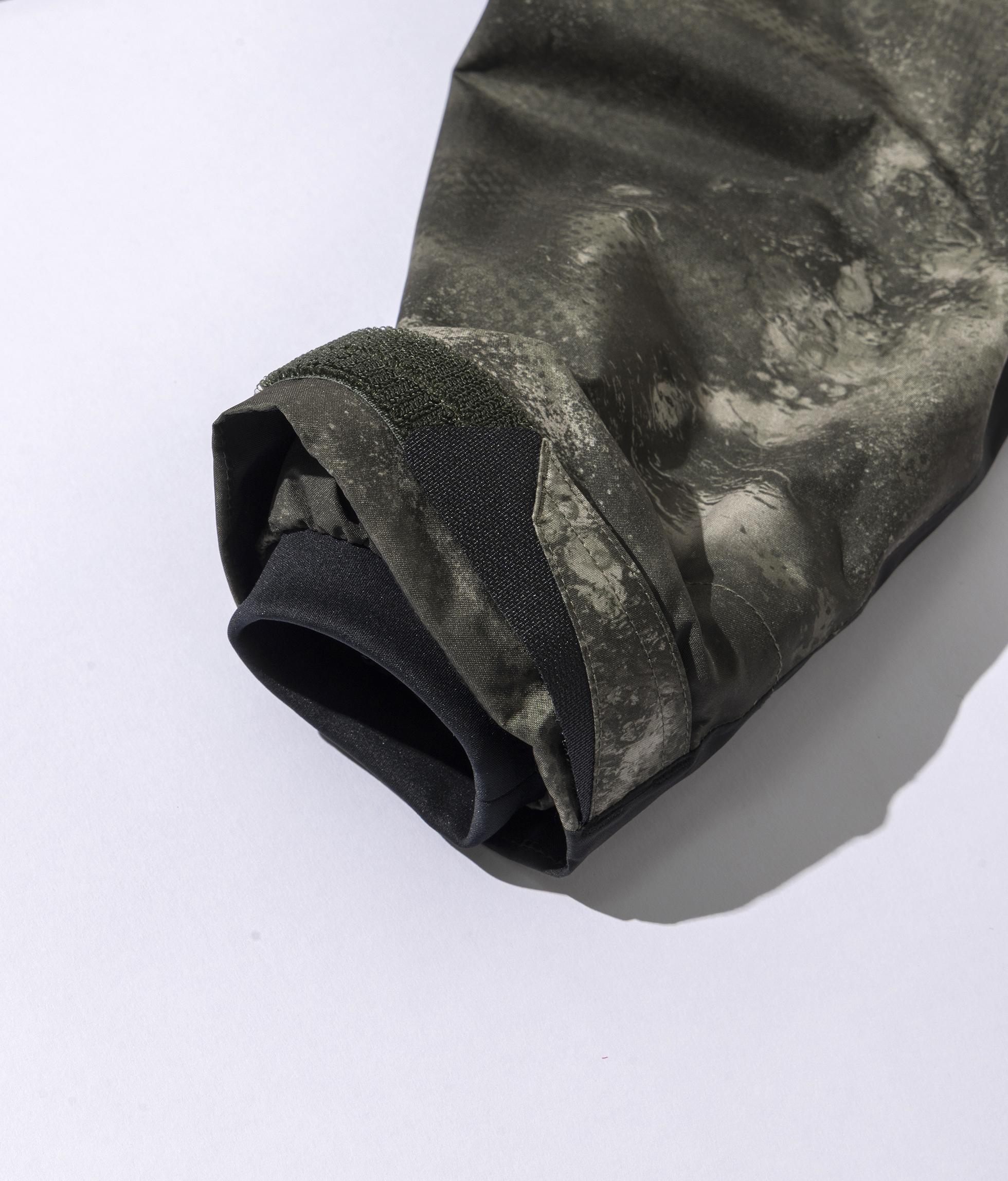 耐久性の高い75デニールリサイクルポリエステルを表地に採用し、環境に配慮した撥水加工。さらに、防水透湿素材としてGORE-TEX(R) PRODUCTS FABRIC(ePE膜)を使用し、柔らかくしなやかな着心地と、裏地にメッシュを配した二重構造とし雨の日や肌寒い日でも快適さを維持。