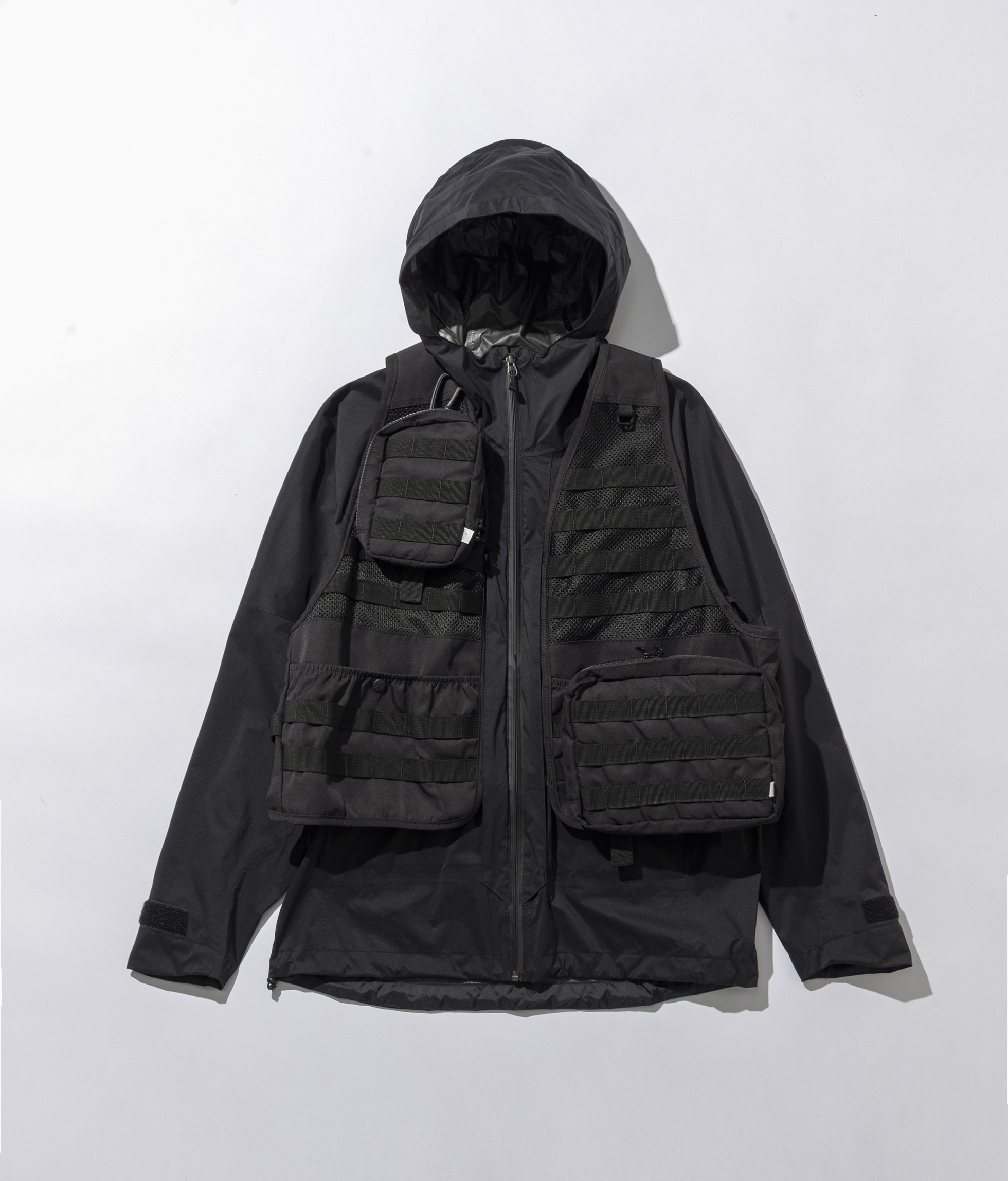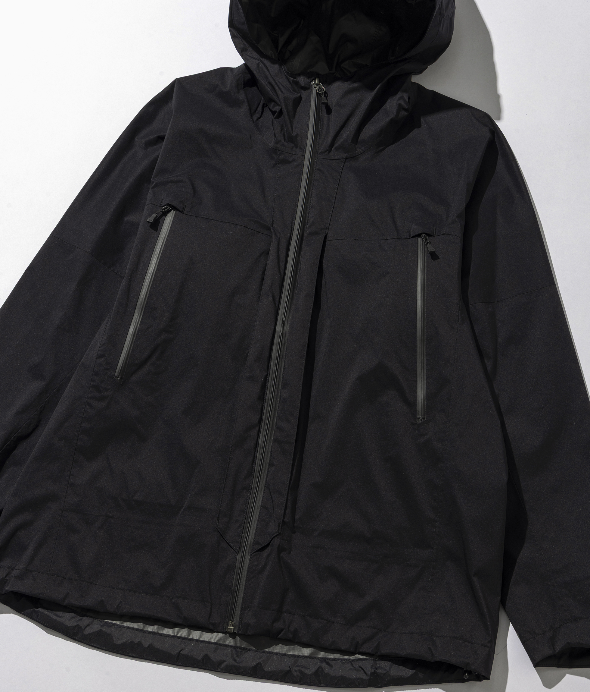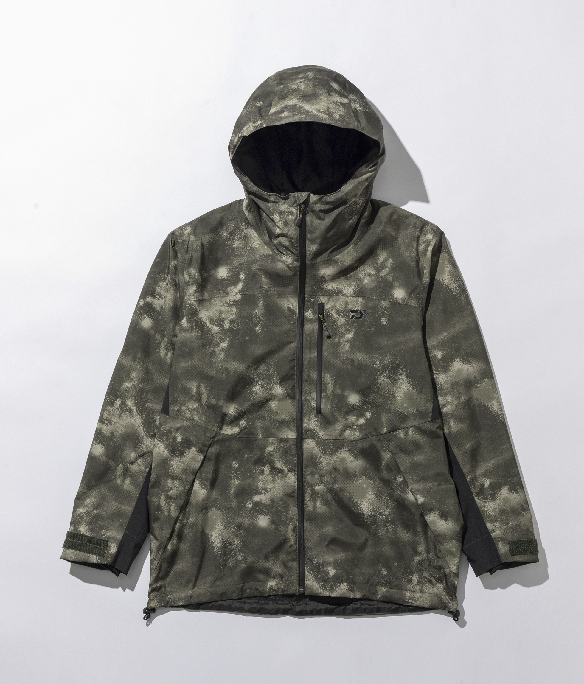 DAIWAのフィッシング用ウェアとして販売するスタンダードモデル「バーサタイルレインスーツDR-1926」のアッパー(上着)をベースに、日常の街中にも馴染むよう着丈や身幅など仕様から独自のパターン設計により身体の動きを妨げず、デイリーユースに適したサイズ設定で機能性を損なうことなく利便性を向上したモデル。