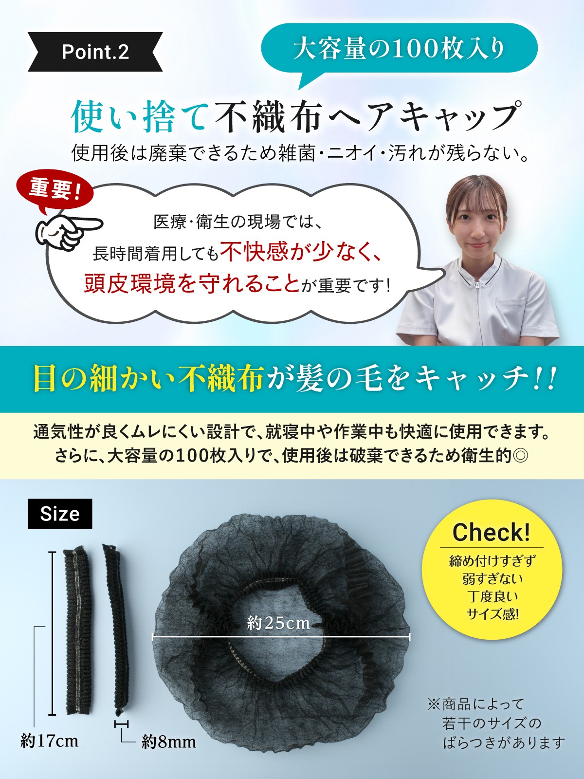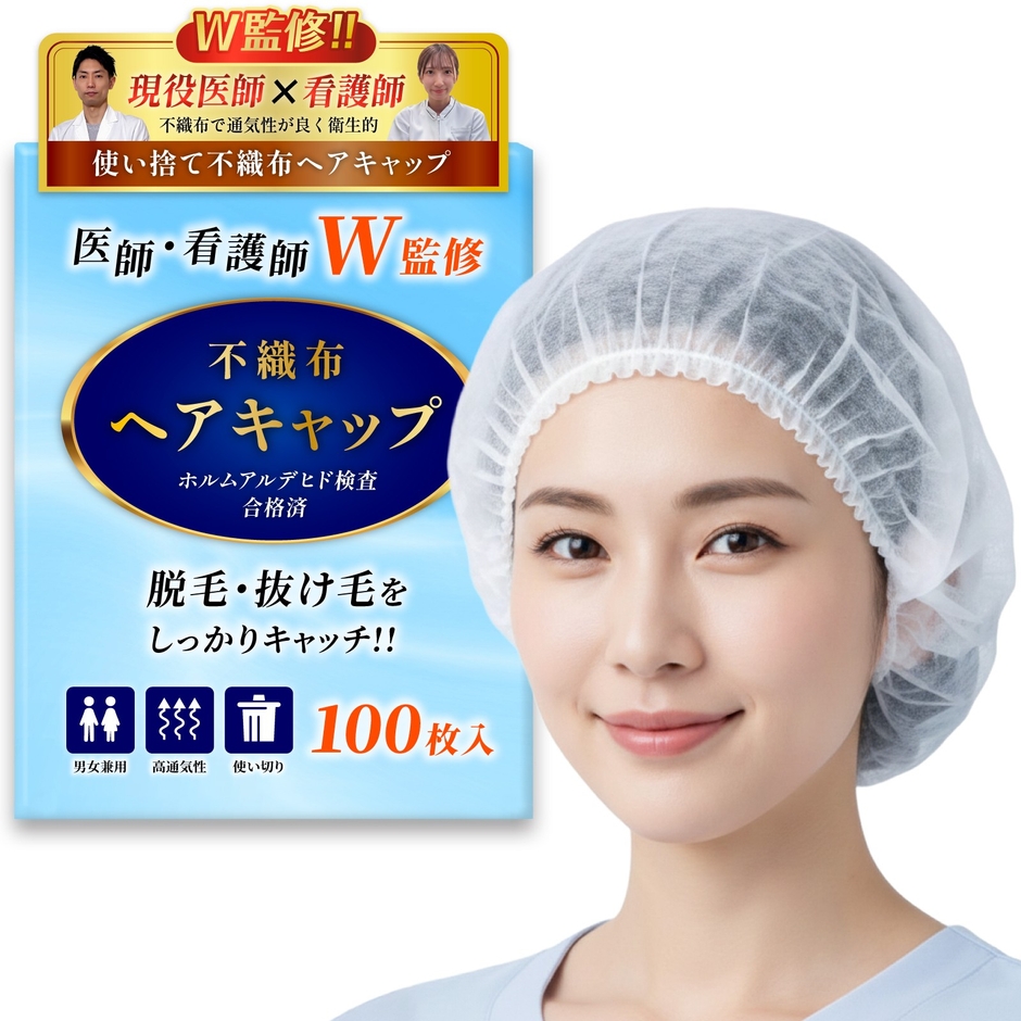 商品名:【現役医師x看護師が監修】使い捨て不織布ヘアキャップ