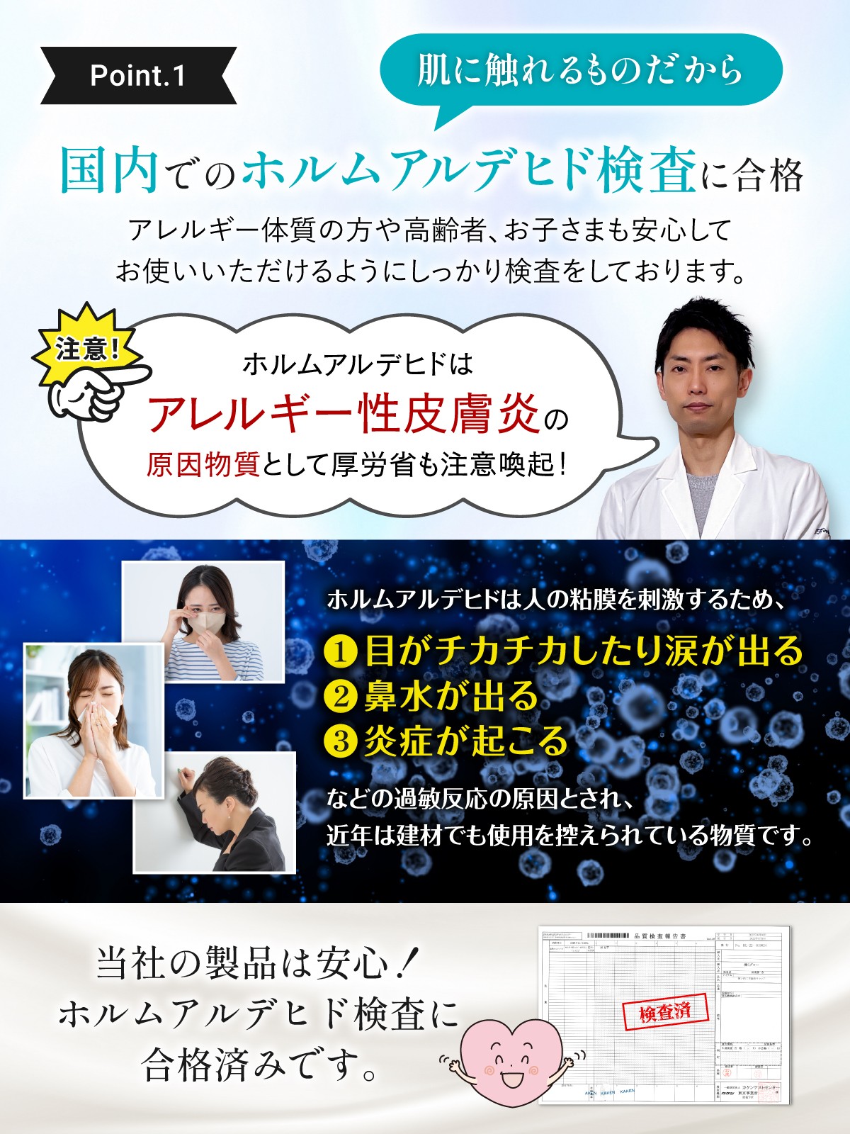 2.【安全性】国内検査機関にてホルムアルデヒド試験合格
