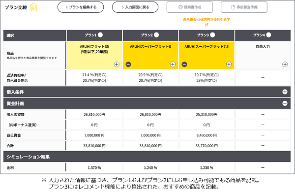 ◆「ARUHIスマートプラン」シミュレーション結果画面(イメージ)