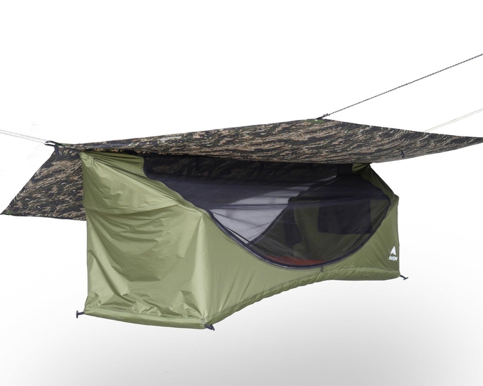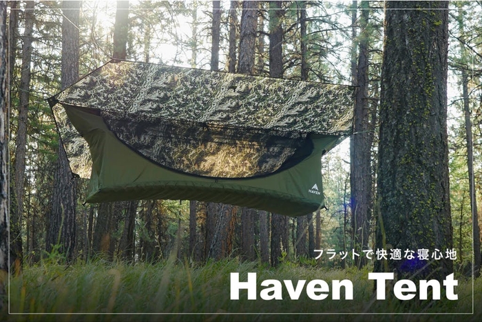【新商品】完全フルフラット式ハンモック「Haven Tent(ヘブンテント)」の新作。広々と使えるXLサイズのカモ柄と便利な関連アイテムがクラウドファンディングに登場!
