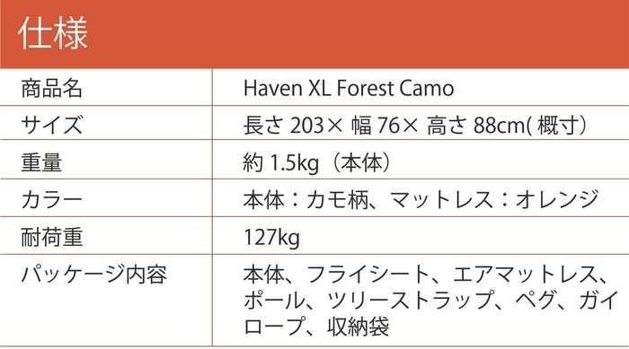 キャンプ業界で話題騒然!Haven Tent 新作第3弾 広々使えるXLサイズカモ柄と便利アイテム