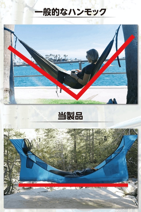 一般的なハンモックのように腰が沈まないので、身体に優しい設計です。