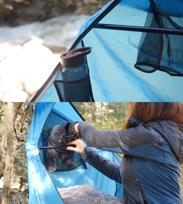 フライシートや蚊帳、エアマットもついているから、ソロキャンプならテントは不要になります。