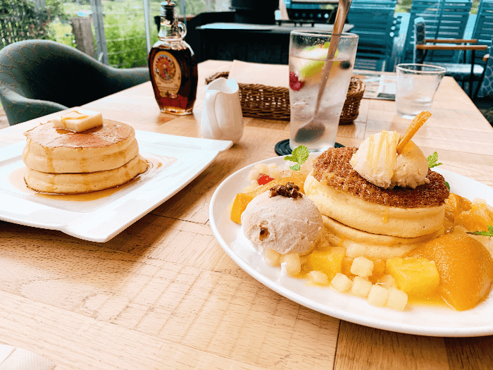 OOE VALLEY STAY内にもレストランやバーがありますが、ぜひ訪れたいのが、ホテルから車で5分ほどの場所にあるOENOSATO RESORT内のコッコ(鶏)のお庭「ココーガデン」。ここでしか食べられない賞味期限10分の極上パンケーキはリピーター続出です!