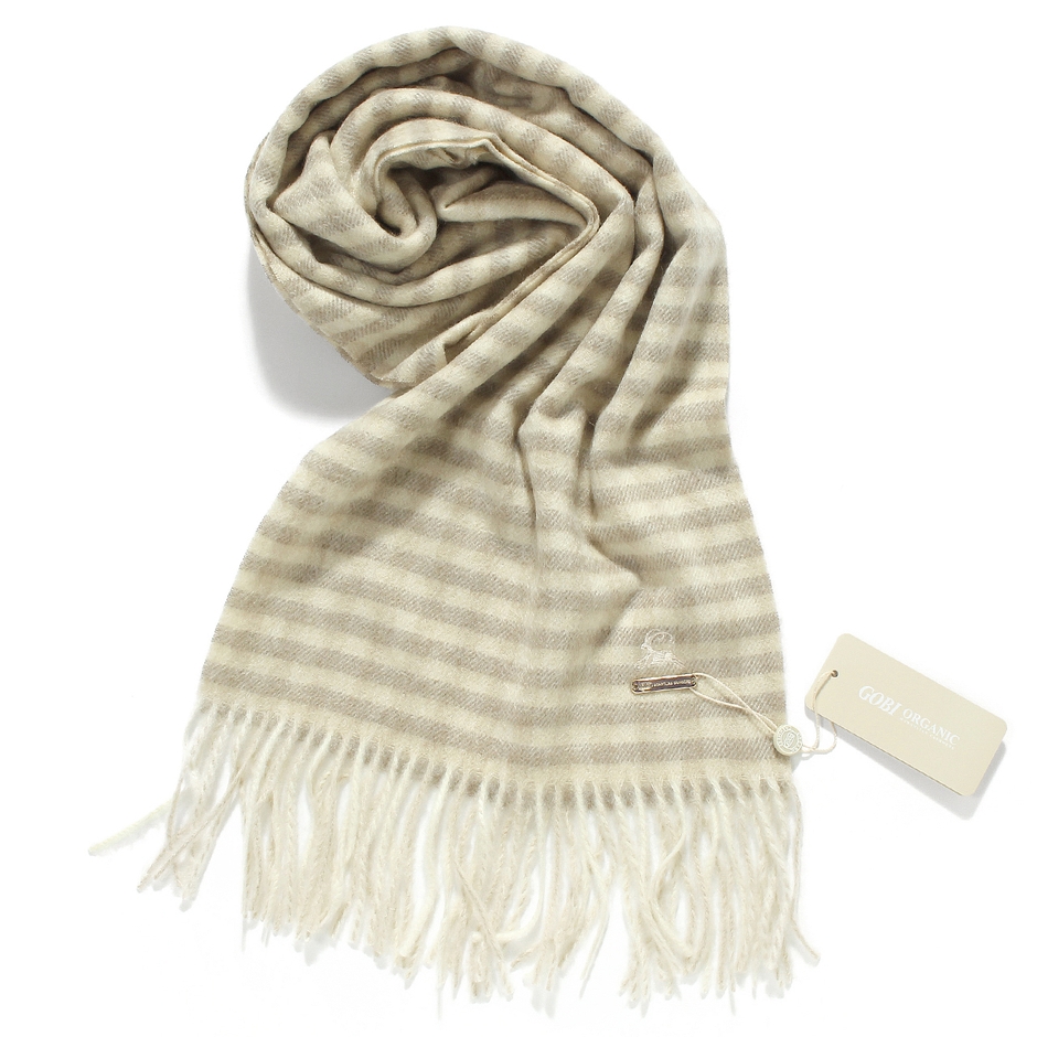 あなたがこのGOBI CASHMEREの100%カシミヤストールを、初めて首に巻く時のことを想像してみてください。あなたが感じるのは、そっと肌の表面をなでる様な柔らかさと、体感温度を高めてくれるほわほわした暖かさ。あまりの気持ち良さに、思わず笑みが溢れてしまうでしょう。理由は希少なピュアカシミヤ100%の素材。ランクの高い極上のカシミヤ原毛だけを厳選して贅沢に使用しており、そのクオリティは、ヨーロッパやアメリカの一流ブランドに提供するほど高いものです。