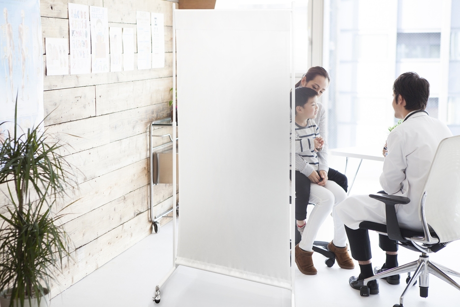 リリカラの『抗ウイルスパーテーション』は、厳しい抗ウイルス性能試験の基準をクリアした抗ウイルス加工カーテンの生地を使用しており、繊維上の特定のウイルスの数を減少させる効果があります。クリニックや学校、ワクチンの接種会場など、衛生を保ちたい場所におすすめです。