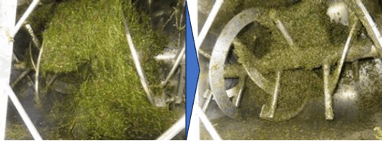 含水率98%の水草を自然乾燥で表面の水分を蒸発させたのち、水分調整のためバイオ炭を少し混合して、「Polaris」に投入する。水草を加熱するセラミックはあらかじめ加熱しておくが、処理が始まると、原子結合分解が発熱反応のため200℃前後の熱がセラミックに供給されることで、処理中はエネルギー供給が不要となる。すなわち、この装置の必要処理エネルギーは活性酸素発生装置の80w×2台=160wだけである。