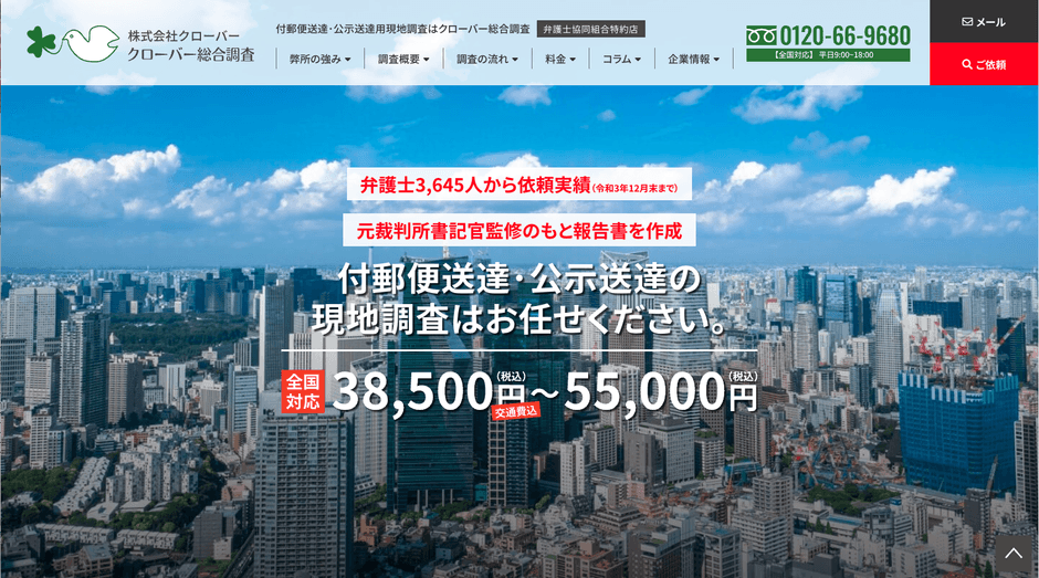クローバー総合調査の付郵便送達・公示送達調査 弁護士からの依頼実績が3,500名を突破