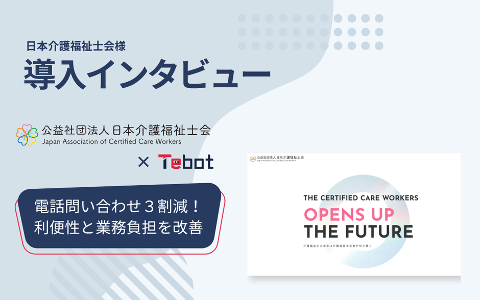 日本介護福祉士会にてAIチャットボット「Tebot(ティボット)」導入 ~電話問い合わせ3割減で、利用者の利便性向上と 業務負担の大幅軽減を実現~