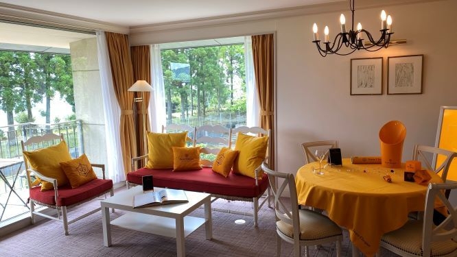 本プランは、「クリコイエロー」を基調とした内装の客室で、200年以上の歴史をもつ「ヴーヴ・クリコ」のシャンパンとシャンパンに合わせたお料理をお楽しみいただける宿泊プランです。ご利用いただけるお部屋は、庭に面した64平方メートルのセミスイートルームです。専用テラスがあり、山の空気や景色を満喫することができます。