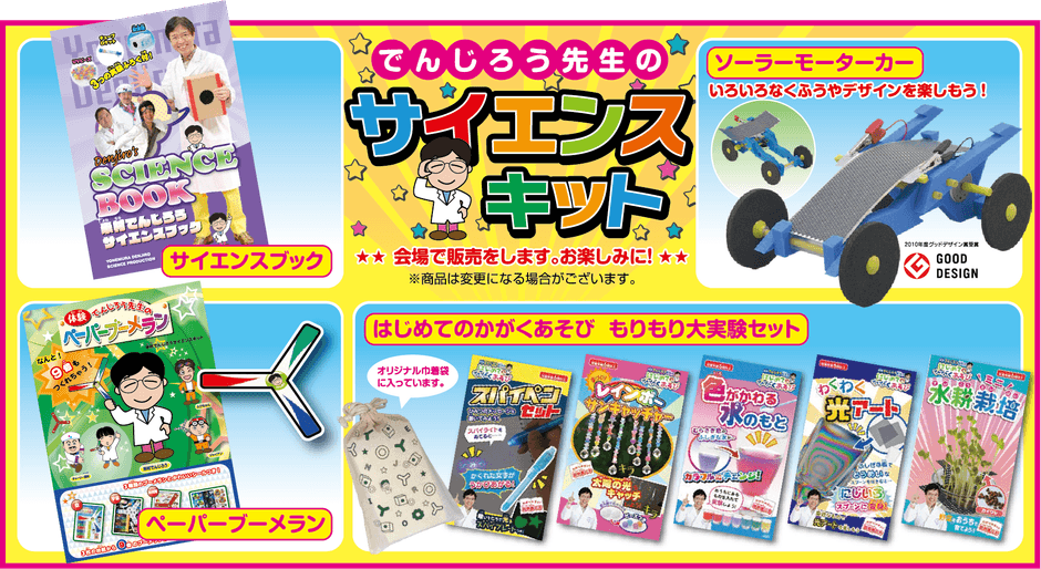 ☞会場ではでんじろう先生の「サイエンスキット」の販売もあります!お楽しみに