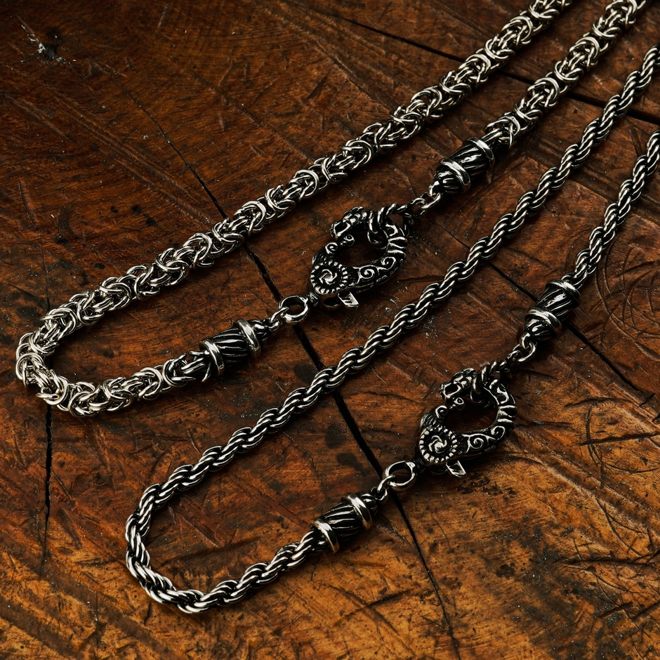 古くよりイタリアに伝わる伝統的なデザインチェーンを、LTならではの世界観に組み合わせて製作されたアイテム。様々なアイテムに用いられているロープエッジのデザインを連想させるそのシルエット、上品で優雅な雰囲気を与えてくれる。それぞれチェーンタイプとブレスレットタイプを用意。