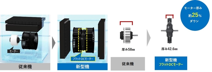 1.業界初「フラットDCモーター」採用で大風量かつ省スペース化を実現