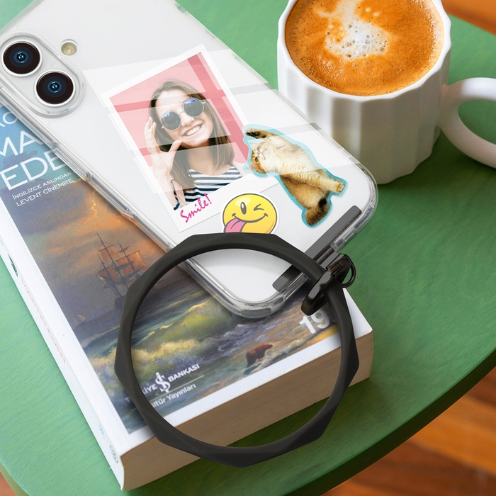 ケースにストラップホールが無くても、端末とケースの間にストラップホルダーを挟み込むだけで簡単にストラップホールを付与できます。(※お手持ちのケースや充電口の形状によってはホルダーが収まらない場合があります。)ストラップホルダーは端末やケースに貼り付けしないので、汚れずいつでも付け外しが可能です。また、写真やステッカーと一緒に使いやすいスリムサイズです。(耐荷重:3kg)ハンドストラップは、丸型のカラビナで簡単に装着が可能です。