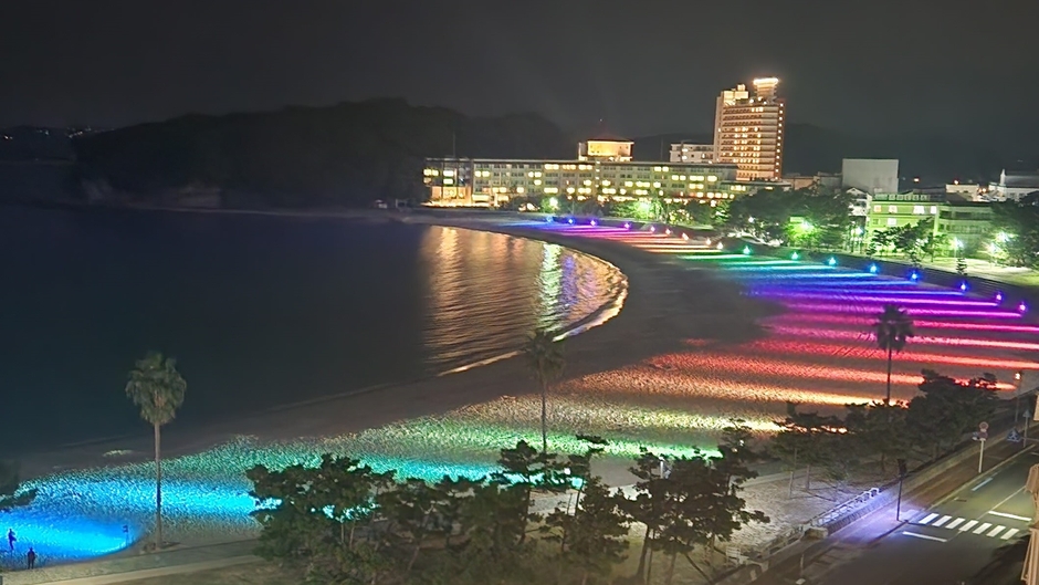 白良浜沿いに建つホテル三楽荘は海水浴場まで徒歩1分の好立地で、もちろん全室からイルミネーションを眺めることができますが、イベント期間中はよりきれいにイルミネーションが見渡せるお部屋を厳選し、「眺望確約」プランとして限定販売いたします。