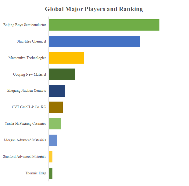 YHResearchのトップ企業研究センターによると、熱分解窒化ホウ素(PBN)製品の世界的な主要製造業者には、Beijing Boyu Semiconductor、Shin-Etsu Chemical、Momentive Technologies、Guojing New Material、Zhejiang Nuohua Ceramicなどが含まれている。2023年、世界のトップ3企業は売上の観点から約44.0%の市場シェアを持っていた。