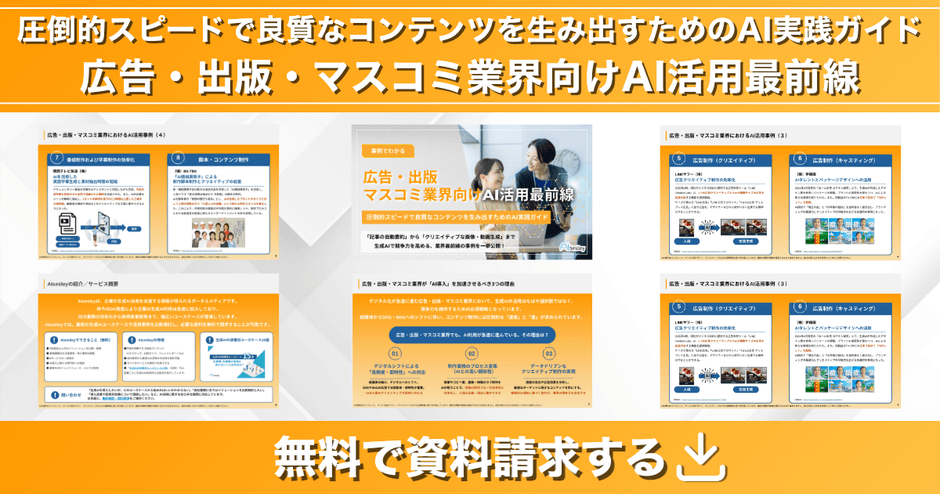 - 弊社担当者よりメールにて「広告・出版・マスコミ業界向けAI活用最前線」をご案内させていただきます。