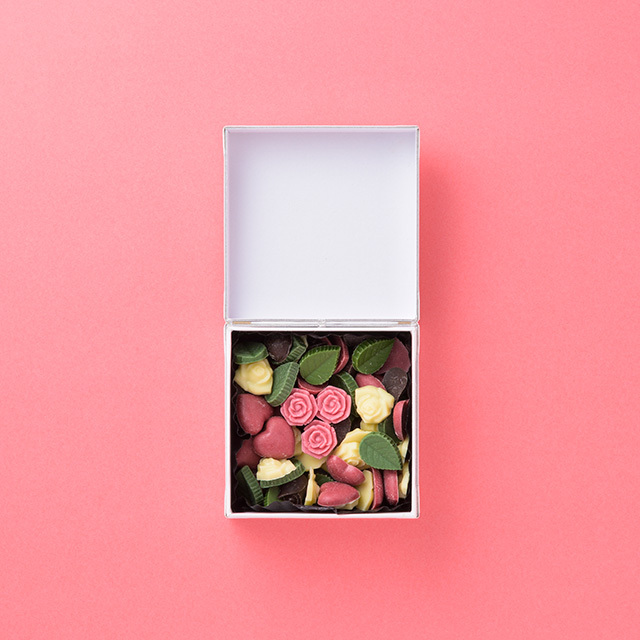 色とりどりのつぼみショコラを敷き詰めたフラワーボックス。