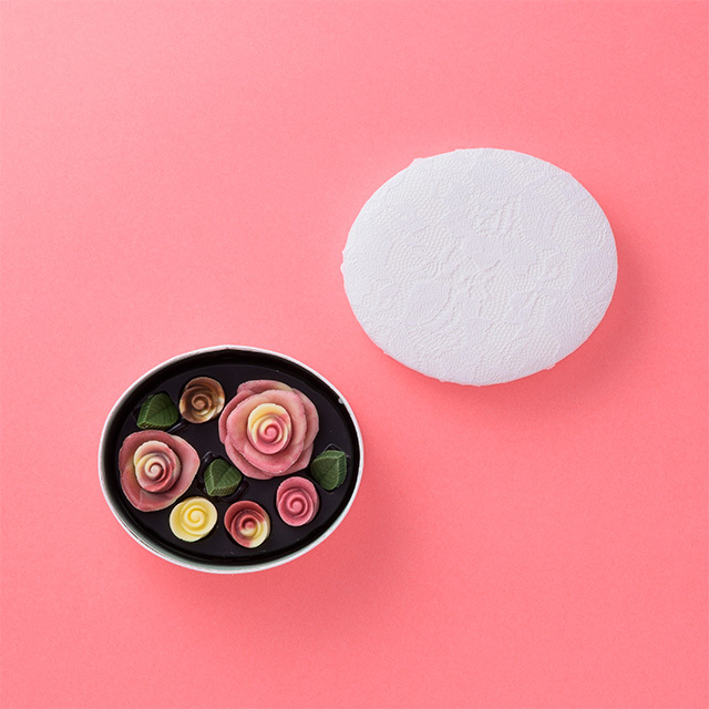 可憐なレースと繊細な薔薇のチョコレートを詰めたボックスです。