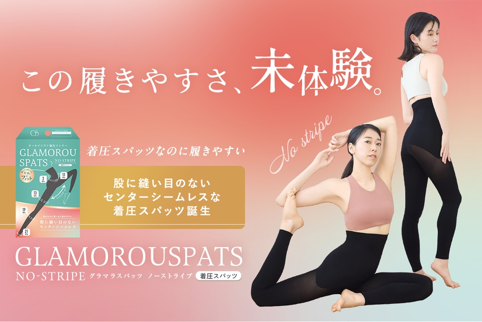 股に縫い目のない着圧スパッツ 『グラマラスパッツ ノーストライプ』が12月24日発売! 180°自由に動ける快適フィットで日常が変わる