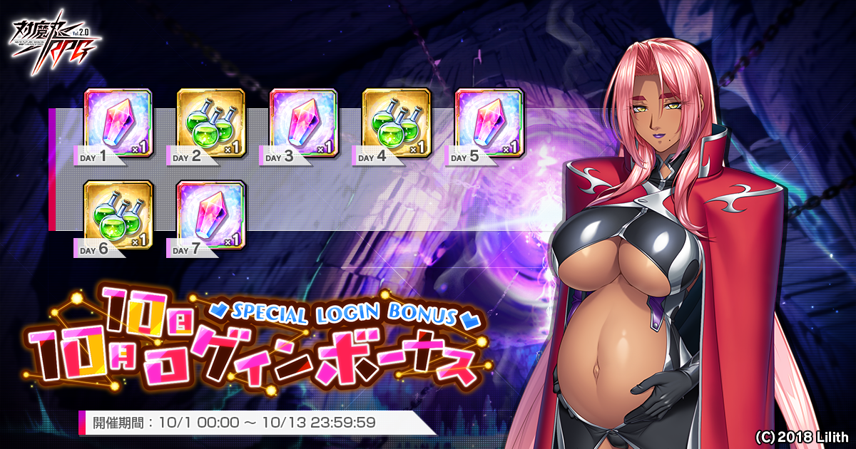 『対魔忍RPG』にて対魔忍アサギ20周年を記念した特別なログインボーナスが実施!さらに10月10日ログインボーナスも同時に開催!