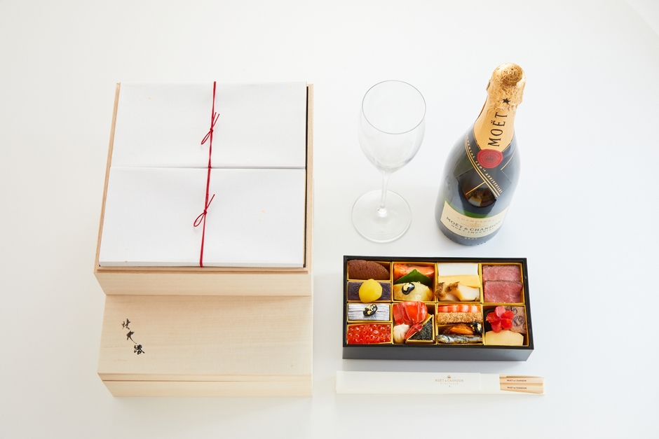 おせちをご購入いただいた方にはもれなく、世界中で愛されるシャンパン『モエ・エ・シャンドン モエ アンペリアル』のフルボトルをプレゼント。おせちとセットにしてお届けします。