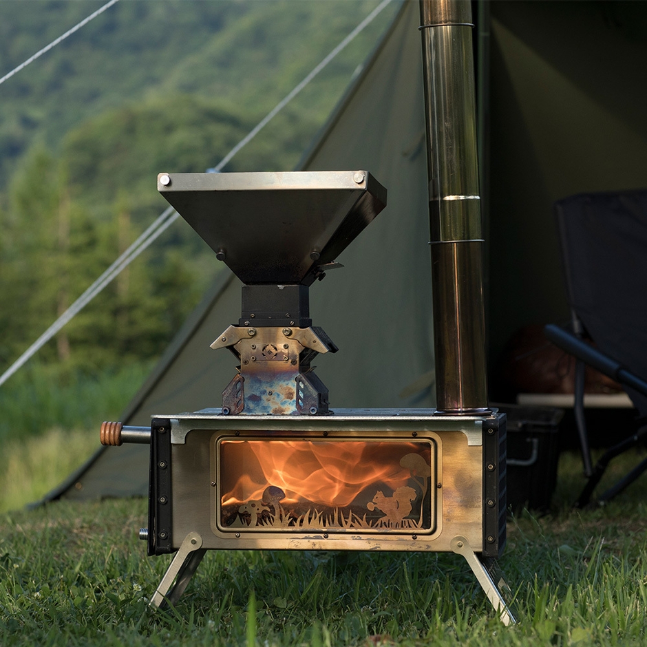 従来のストーブに取り付けることによって、ペレットを燃料として使用することが可能。燃焼時間も燃料コストも、薪と比べて非常にエコになっているので、厳しい寒さの冬キャンや長期間滞在キャンプなどに頼れる製品です。