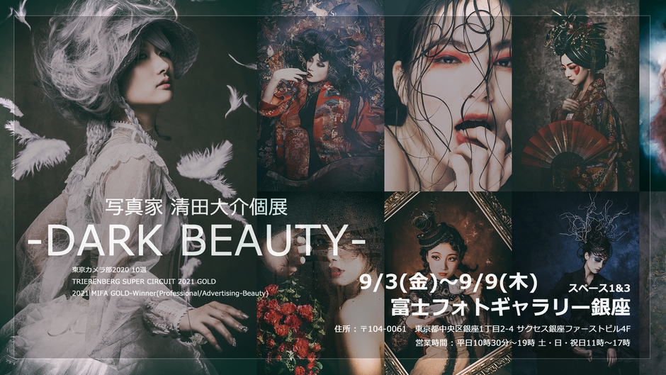 東京都の広告写真家であり「清田写真スタジオ」の経営者でもある清田大介は、東京・銀座にある富士フォトギャラリー銀座にて個展『-Dark Beauty-』を2021年9月3日(金)~9月9日(木)に開催いたします。