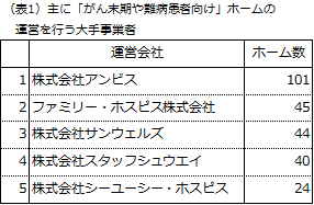 1)主に「がん末期や難病患者向け」ホームの運営を行う大手事業者