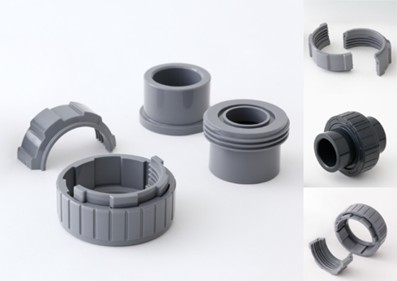 現場でナットを入れ忘れても、後付け可能な便利ナットです。従来のユニオン継手は塩ビ管にナットを先に通す必要があり、忘れると作業やり直しが発生します。本製品は後から簡単にナットをはめ込めるため、失敗をリカバリーできる継手です。審査会では、独特の発想で工事ミスをリカバリーするアイデアが評価されました。