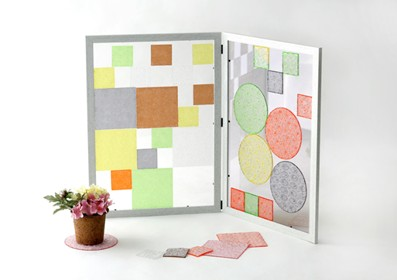 韓国のポシャギとレトロガラスをイメージした、ビーズ状の凹凸が美しい塩ビ製タイルです。透明凹凸シート・色透明シート・自己粘着シートを組み合わせ、独自の意匠性を実現しました。コースターや植物マット、リノベーション素材などDIYに最適で、自己粘着性により接着剤不要でガラス装飾が可能です。審査会では、高透明度の凹凸シートと色透明シートの美しい組み合わせ、さらに塩ビ素材の自己粘着性を効果的に活用した点が高く評価されました。