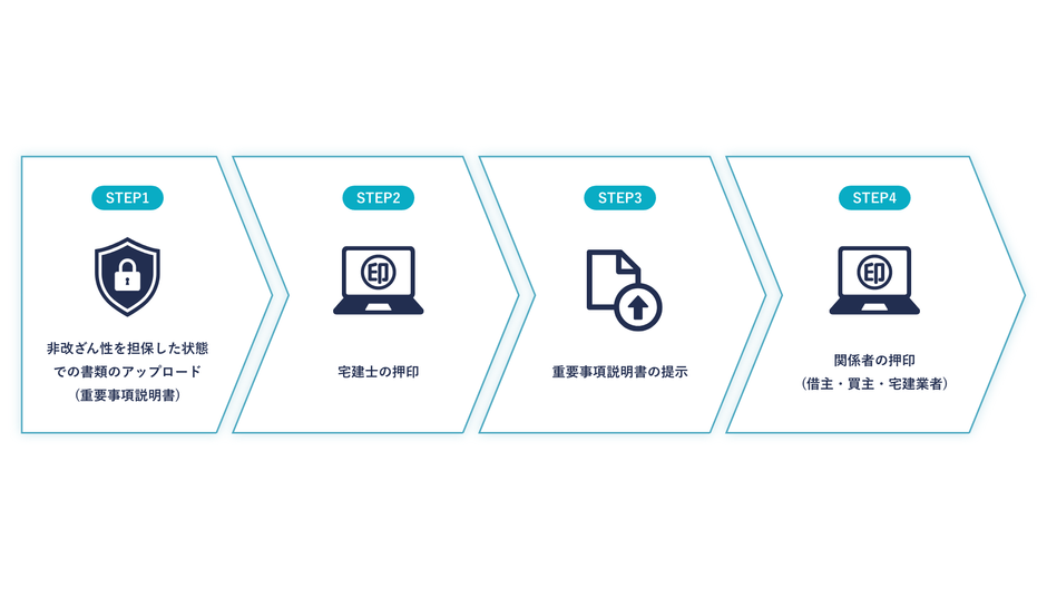 - 非改ざん性を担保した状態での書類のアップロード(重要事項説明書)