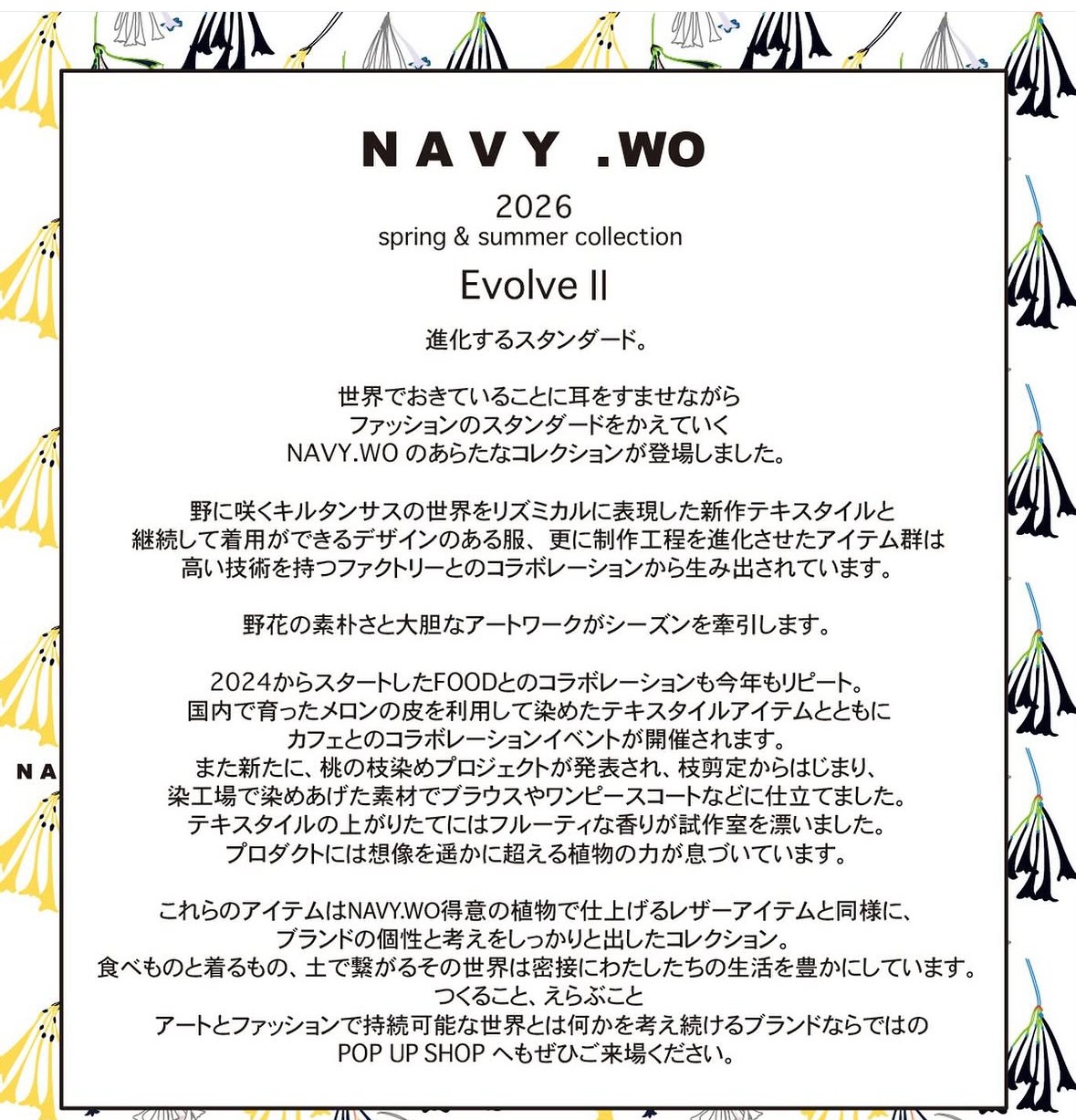 2026春夏コレクションNAVY.WO デザイナーメッセージ