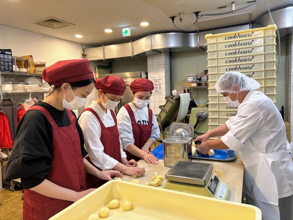 当社は昨年の6月に、地元の伝統野菜“田辺大根”の葉の廃棄問題に着目した同大学の現代生活学科の学生さんたちとともに、 田辺大根の葉を有効活用した新たな商品開発に着手しました。10月には、試作レシピを考案し、11月には、創業79年の老舗ベーカリーである株式会社ダイヤ(大阪市生野区)のご協力のもと、パンの試作品を製作しました。そして12月の商品選定会を経て、商品化に成功しました。