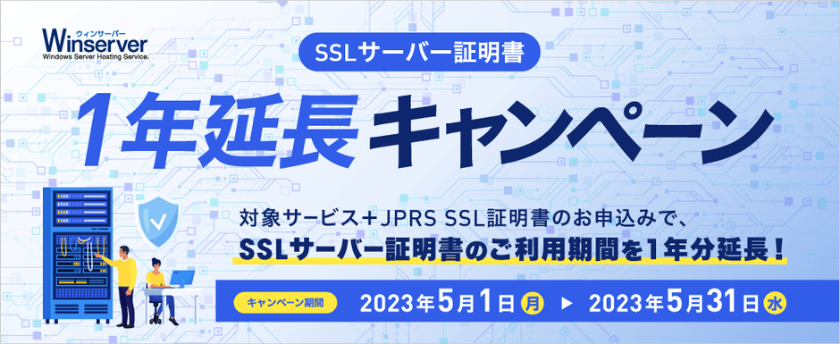 Windowsサーバー専門のホスティングサービス「Winserver」が “SSLサーバー証明書1年延長キャンペーン”を 2023年5月1日(月)~5月31日(水)に実施!