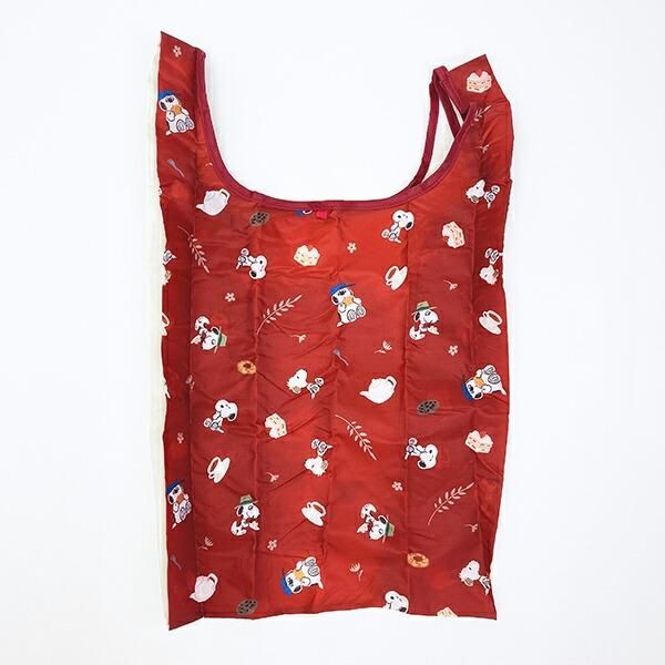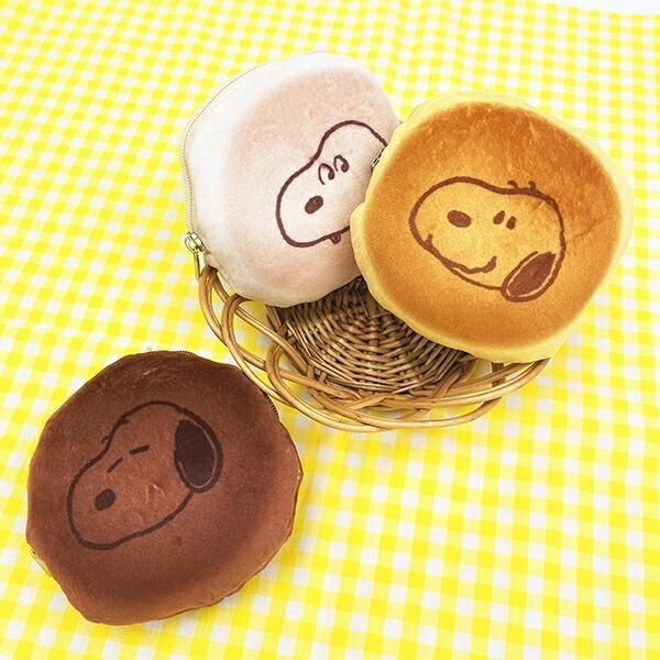この可愛すぎる姿は、エコバッグを収納した状態。まるでカスタードケーキのような、ころんとしたフォルムがたまらなくキュート。リアルな焼き色と、スヌーピーの焼き印まで入ったデザインで、思わず食べたくなるような可愛さです。