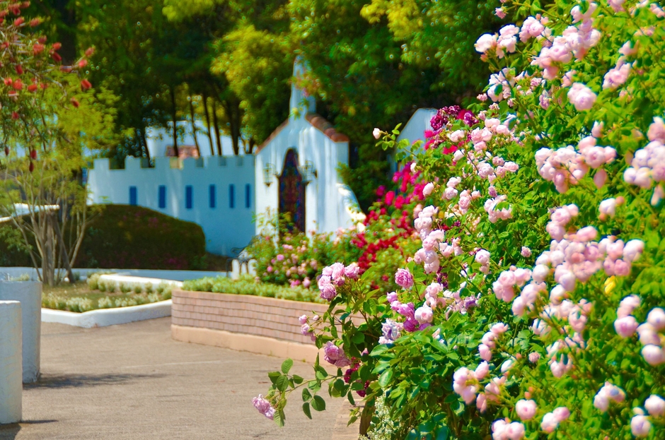 不朽の名作「ベルサイユのばら」原作者池田理代子氏監修のバラ園。マリー・アントワネットが愛したベルサイユ宮殿の“プチ トリアノン”をイメージしたローズガーデンです。 王妃アントワネット®やオスカル フランソワ®などの「ベルサイユのばら®シリーズ」全品種やフレンチローズが咲き誇ります。オスカルやアンドレのキャラクターパネルが設置してあるフォトスポットは、ファンならずとも思わず写真を撮りたくなるフォトスポットです。また、レオマバザールではベルサイユのばらグッズも販売しています。