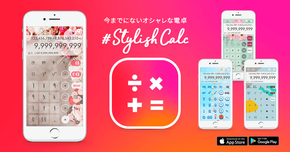 約170種類の法定通貨換算や、計算修正機能も! 女性向けデザイン電卓アプリ「#StylishCalc」をリリース