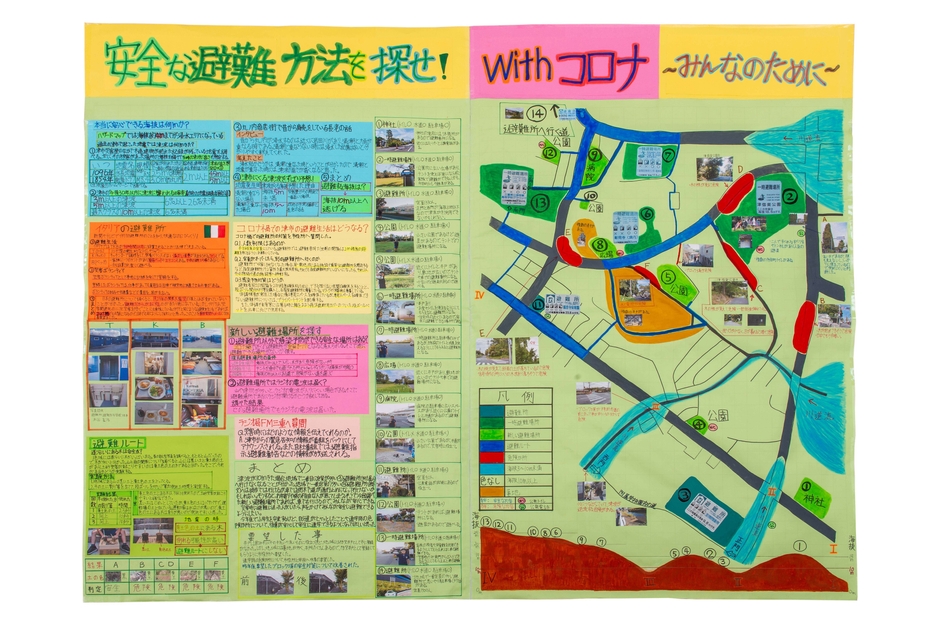 ・過去に発生した自然災害の被害状況やその災害を経験した人々の感想や行動を調査したうえで、今後の防災対策に役立てようとマップにまとめる作品が多く見受けられた。