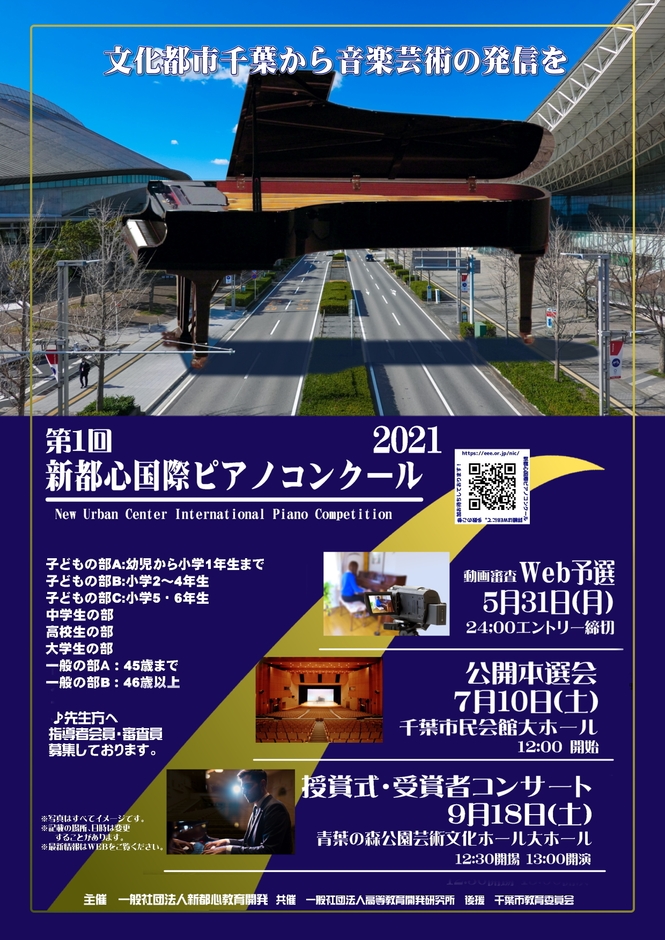 一般社団法人新都心教育開発(千葉市稲毛区、代表理事:吉川 弘大)と新都心国際ピアノコンクール運営事務局は、それぞれの練習段階における技術力と表現力の高いピアニストの発掘と、クラシック音楽の振興と国際的発展を目的として、千葉を舞台に「第1回新都心国際ピアノコンクール2021」を開催いたします。それにともないWEB予選の一般募集を4月7日(水)より開始します。
