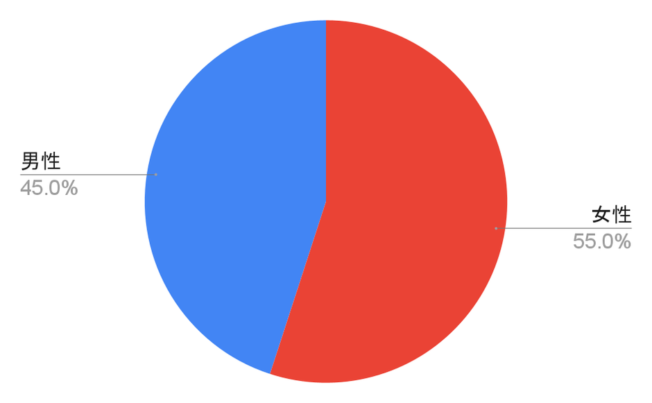 女性が55%(275名)、男性が45%(225名)と、やや女性が多い結果となりました。